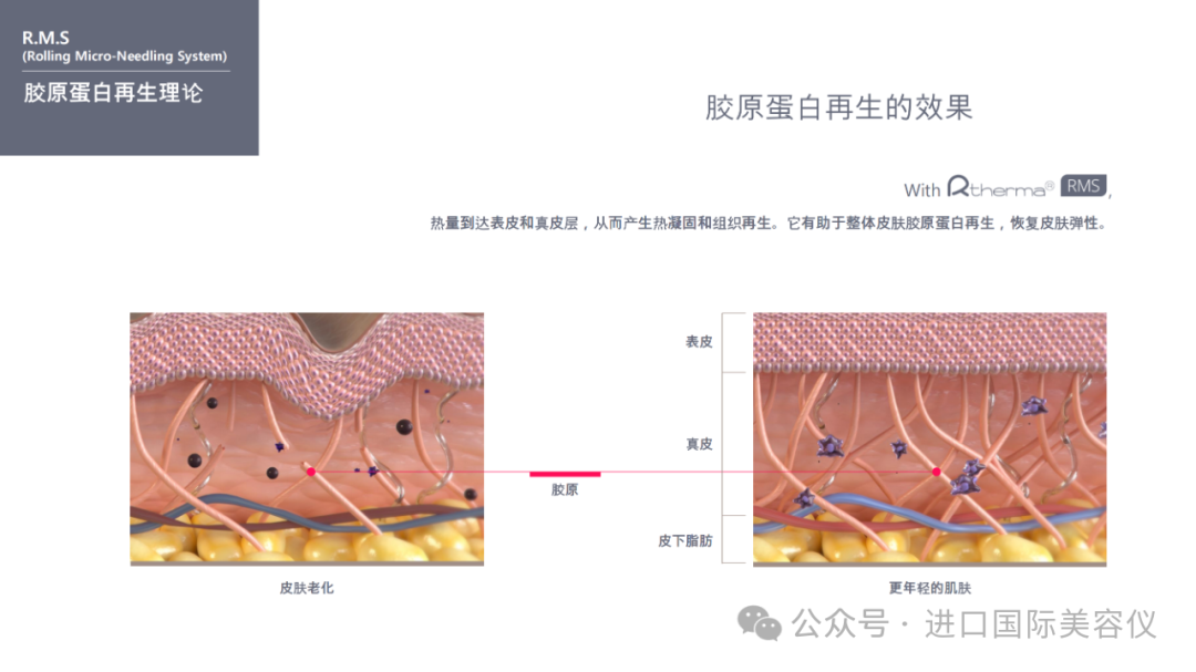 利用高效的滚針配合熱能,傅遞至三個不同深度,促進膠原蛋白增生,令肌膚保持彈性、光滑及緊。